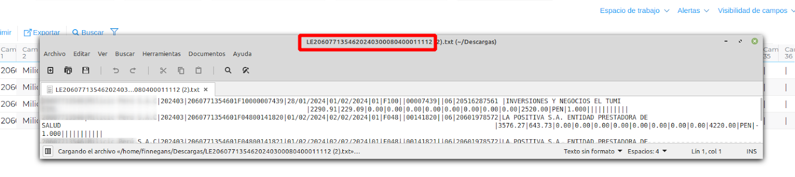 - Registros: Es un combobox con diferentes opciones de presentación, según la opción que se seleccione es la nomenclatura con la cual se descarga el txt . Las opciones son: