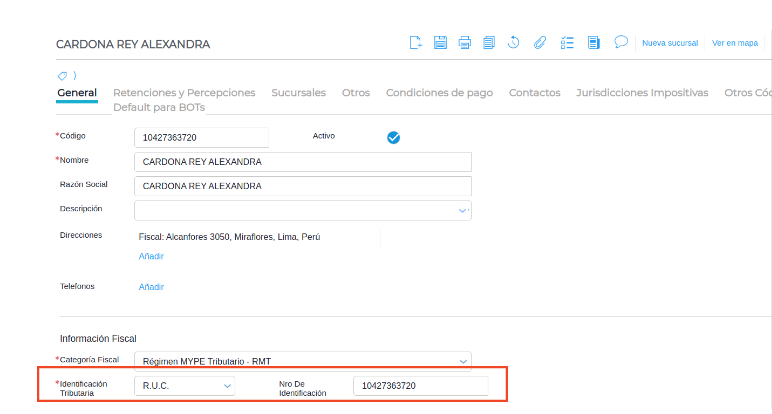 - Verificar que la identificación tributaria tenga asignado un código adicional.