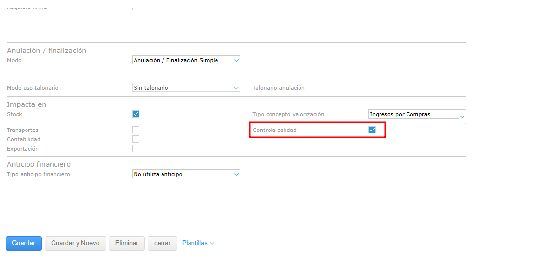¿Como Registrar controles de calidad en ciertas transacciones?
