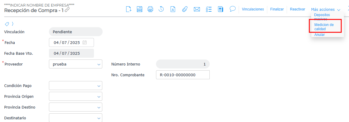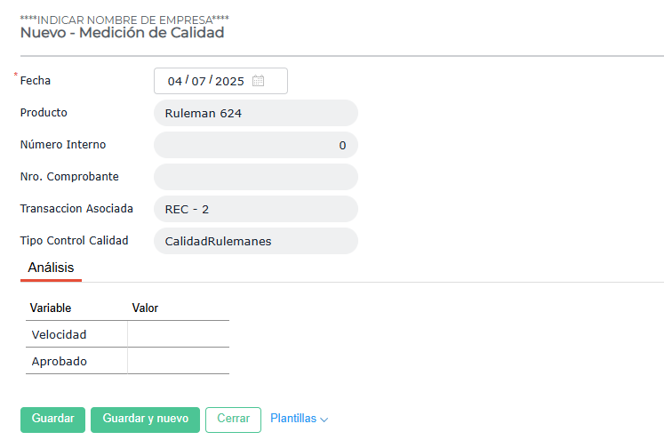 Todas estas variables son las que luego se visualizarán dentro del pop-up de Medición de Calidad al momento de completar una transacción (por ejemplo, una recepción de mercadería), asegurando que el control se realice de forma estandarizada.