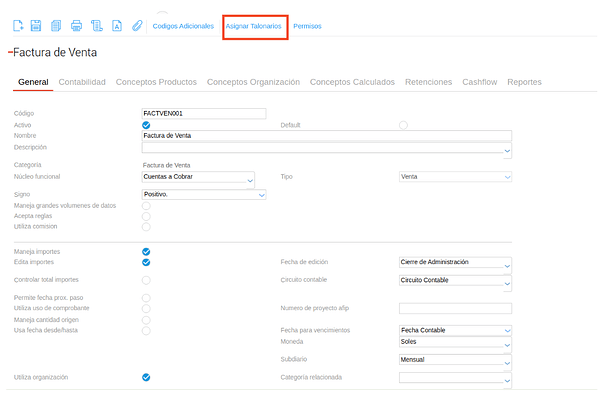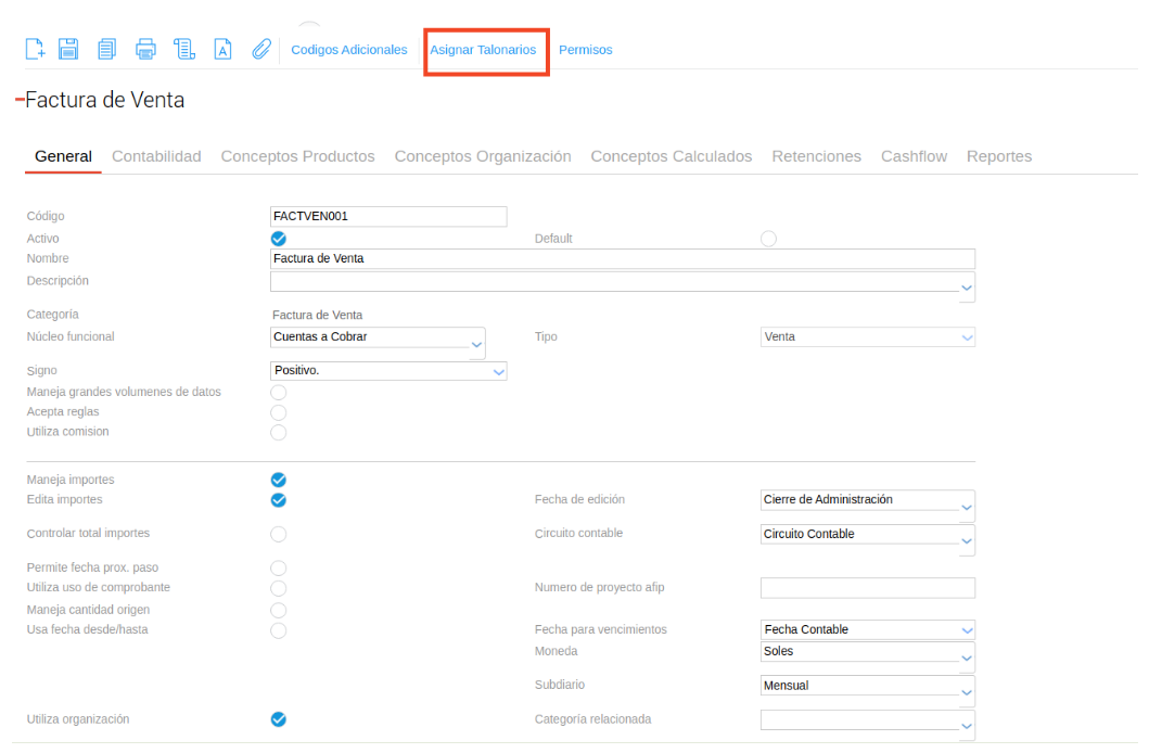 c. En caso que no tenga, asignar el talonario correspondiente