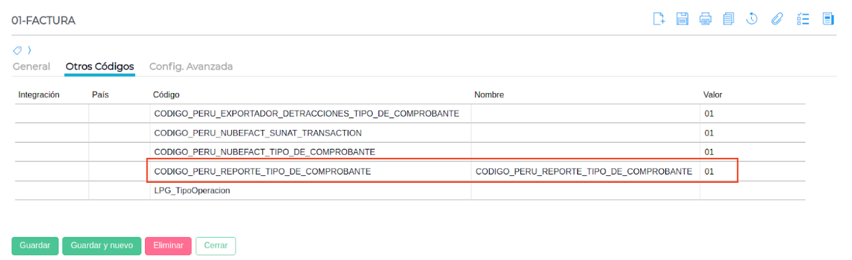 Falta el código adicional CODIGO_PERU_REPORTE_TIPO_DE_COMPROBANTE