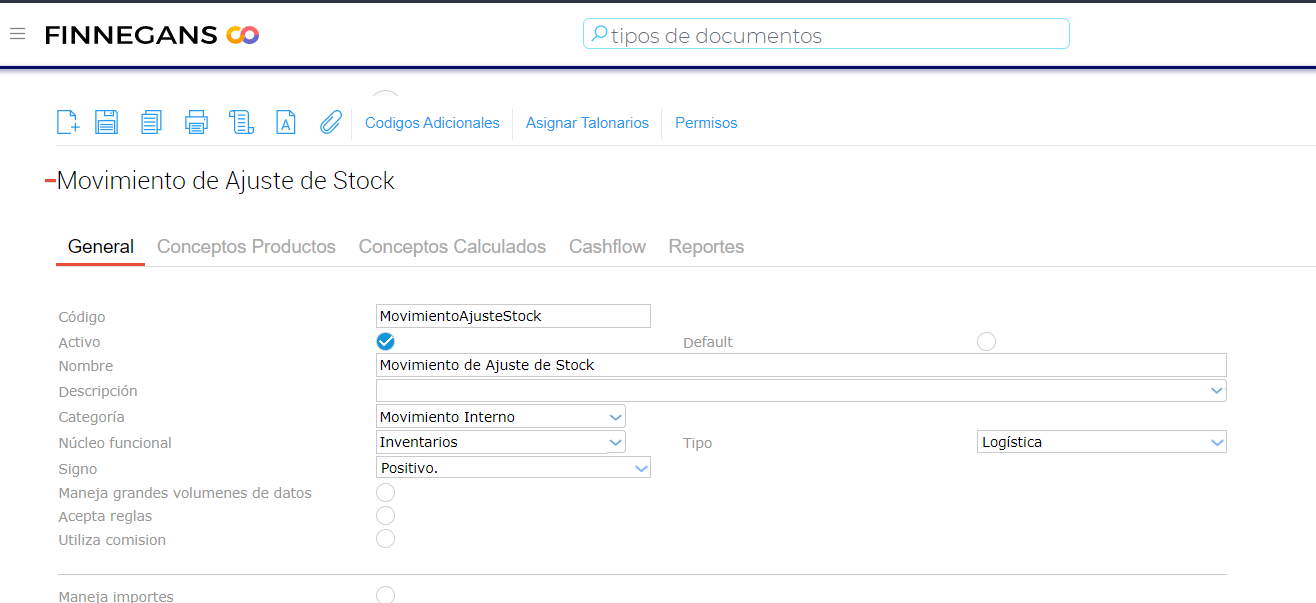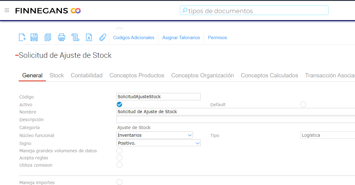 2) Duplicar el documento Movimiento Interno de Stock y denominarlo “Movimiento de Ajuste de Stock”