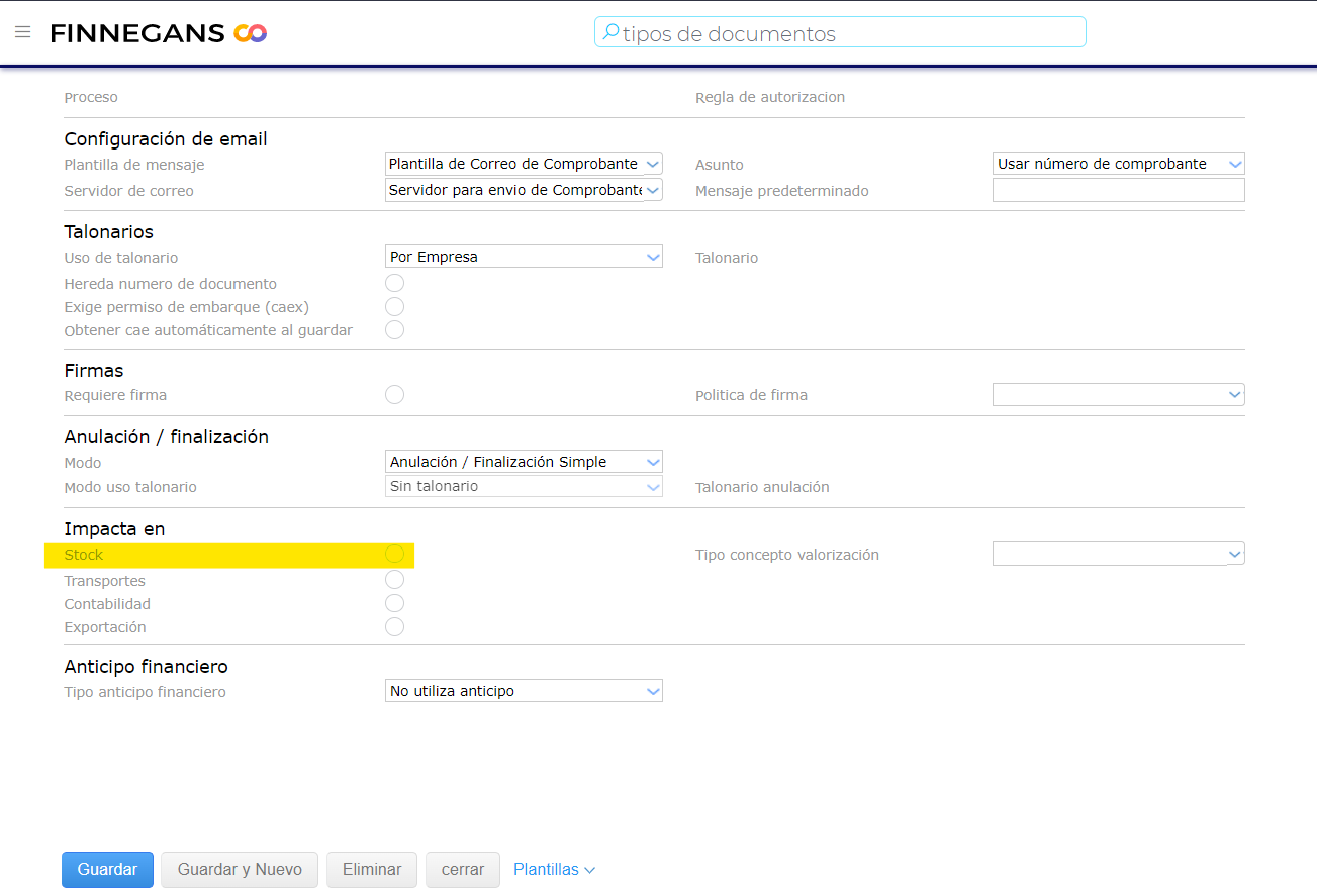 - Impacta en: Desactivar el check “Stock”