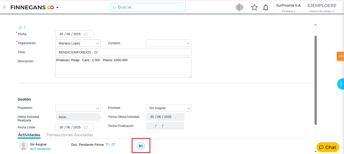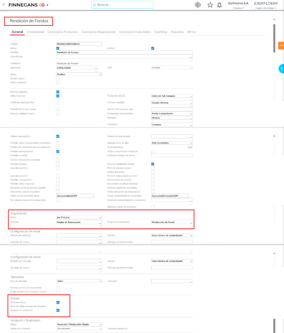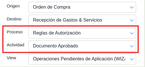 - Configurar el documento de tipo Rendición de fondos para que utilice reglas de autorización