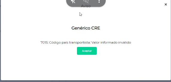 Genérico CRE - 7015: Código país transportista: valor informado inválido