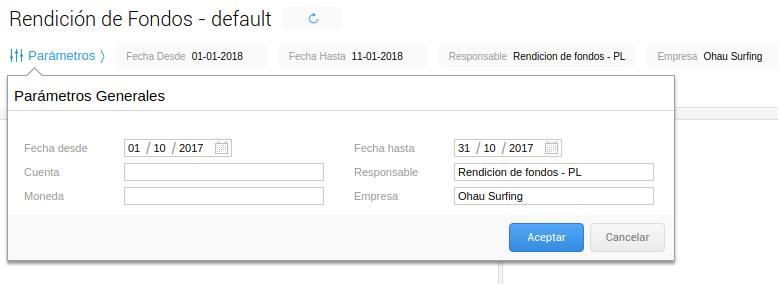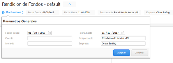 En los parámetros, podés seleccionar las fechas desde / hasta, empresa y moneda.