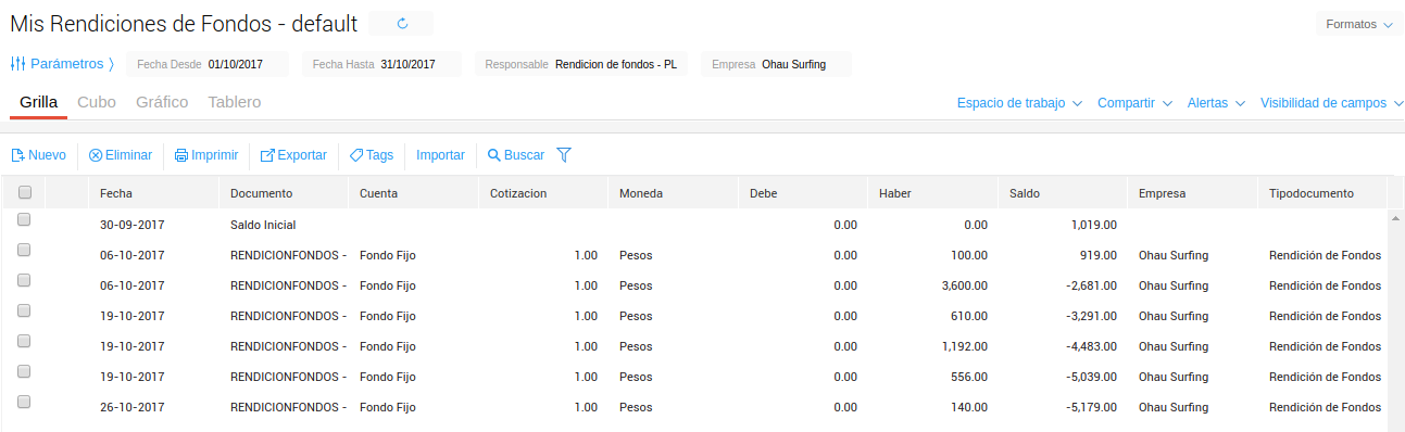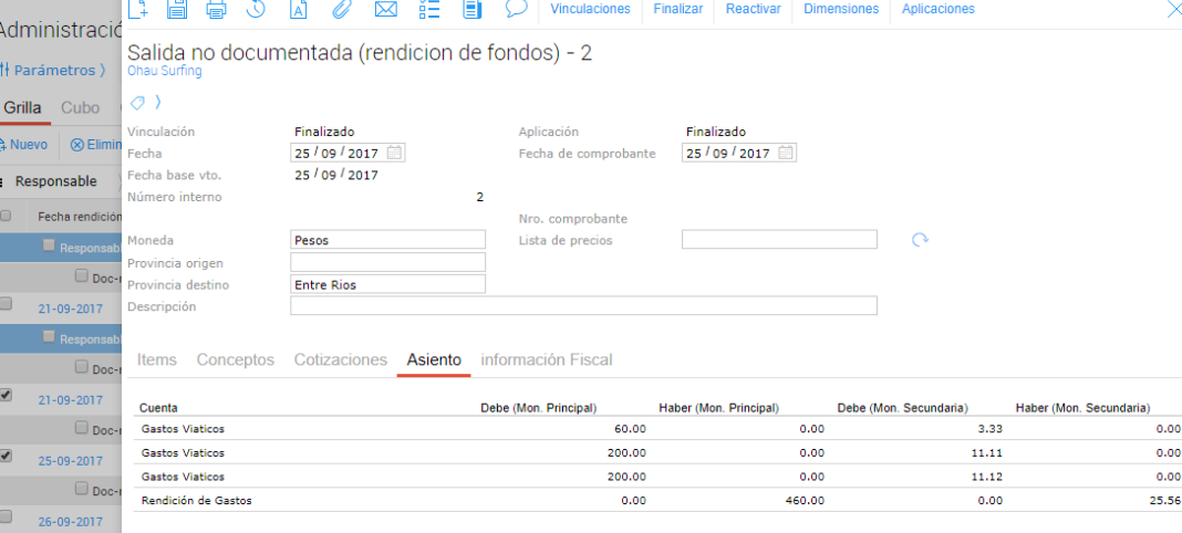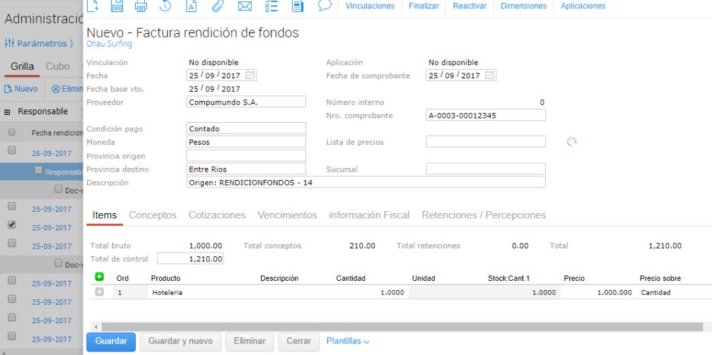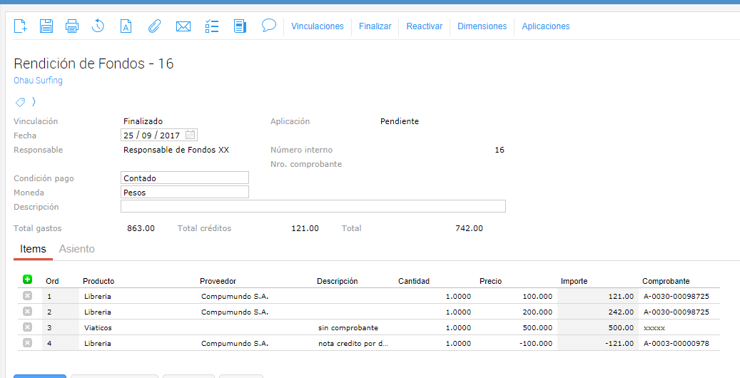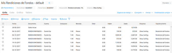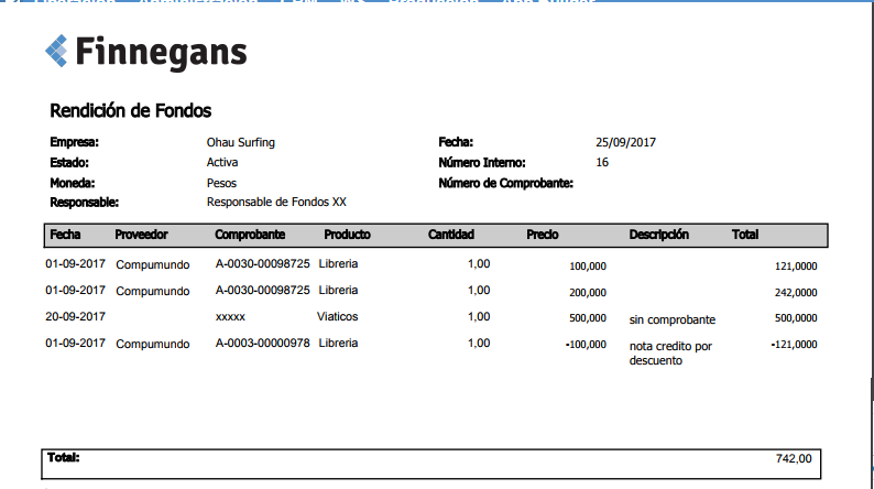 Finnegans te permite cargar las rendiciones, a la vez que permite al responsable de esos fondos tener una cuenta corriente de sus rendiciones y renovaciones.