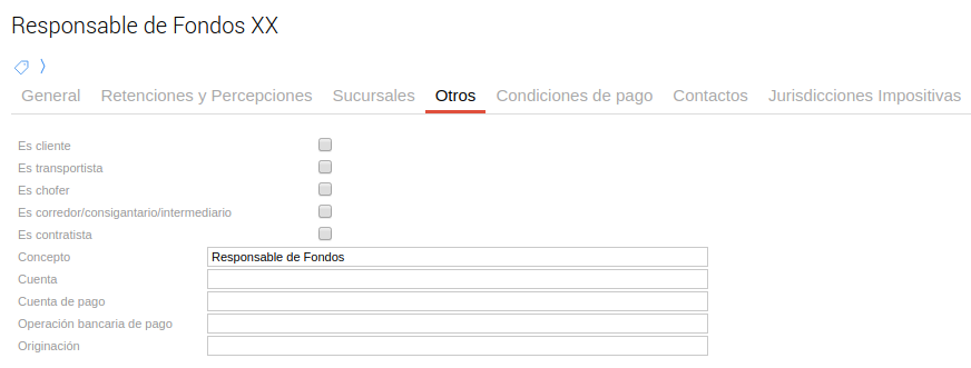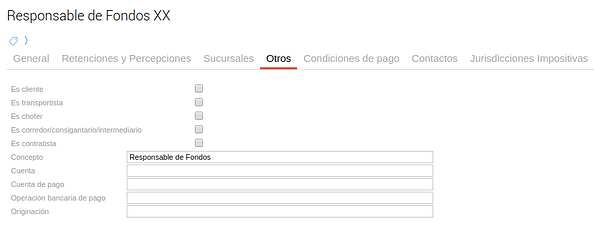 Para poder cargar Rendiciones de Fondos, es necesario que el responsable esté dado de alta como proveedor. Este proveedor, tiene que tener como concepto Responsable de Fondos.