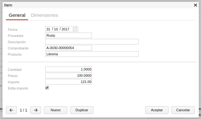 Si haces click sobre el botón Duplicar, podes cargar más de un producto para el mismo comprobante.