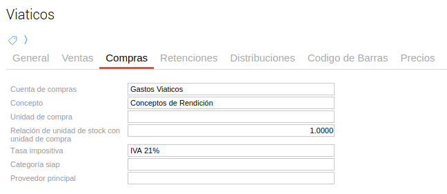 En la solapa Compras del producto, tenés que indicarle este concepto.
