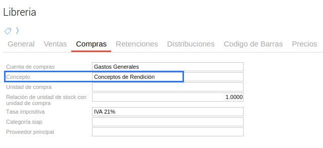 Los productos que se imputan en las rendiciones de fondos, tiene que tener como concepto de compras “conceptos de rendición”.