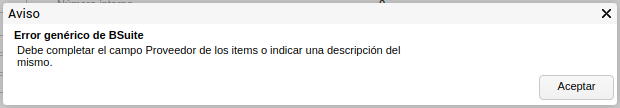 El campo proveedor no es obligatorio. Muchas veces el proveedor no está dado de alta en el sistema y el usuario no tiene permisos para dar de alta nuevos terceros. Si no completás el proveedor, el sistema te exige que completes una descripción (campo siguiente). Al guardar se valida que hayas completado al menos alguno de estos campos
