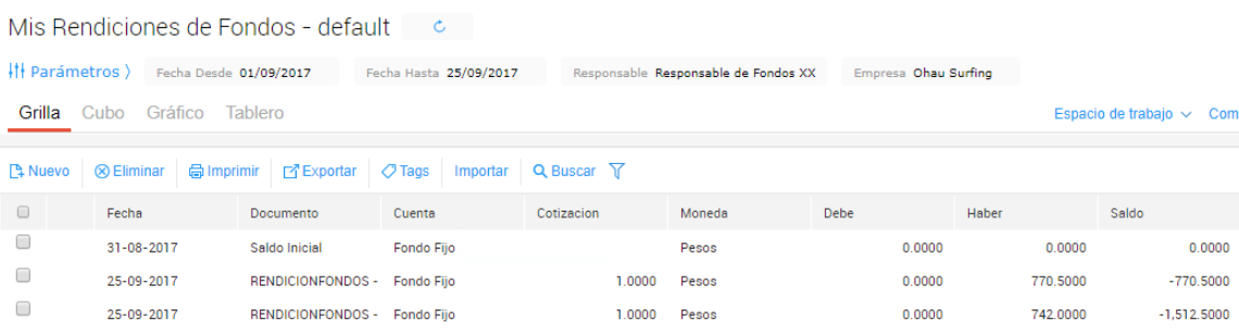 El usuario responsable de sus fondos tiene acceso a sus rendiciones de gastos y renovaciones de fondos teniendo siempre la visualización del saldo.