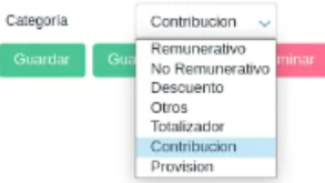 - Categoría de Concepto: Seleccionar la categoría de concepto: Remunerativo, No Remunerativo, Descuento, etc. - No Obligatorio - Este dato se debe seleccionar en el caso de querer consultar si determinado totalizador está o no configurado en la categoría de concepto seleccionada, caso contrario traerá todos los conceptos.