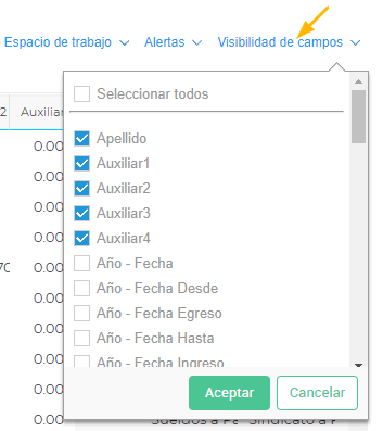 - Luego, a través del botón “Visibilidad de campos” pueden habilitar o deshabilitar columnas del reporte.