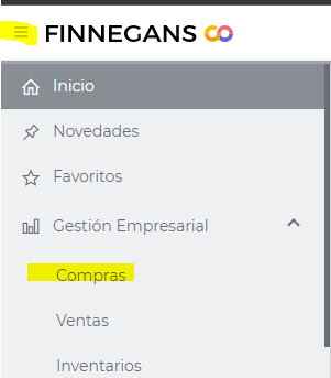 Ir por MENÚ > GESTIÓN EMPRESARIAL> COMPRAS