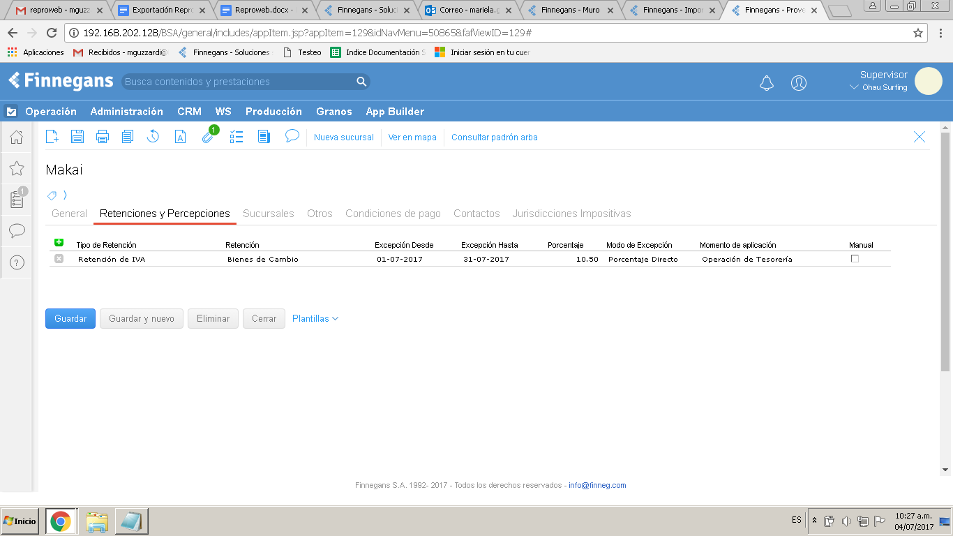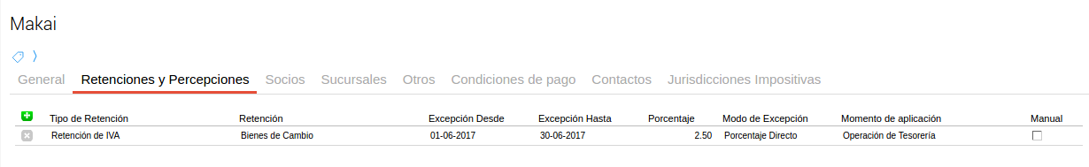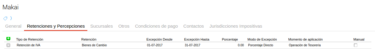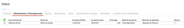 El sistema completará el porcentaje de excepción del proveedor en cero, sobre todos los conceptos de retención asociados al proveedor. De esta manera, desde el día 01 hasta el 31, no se aplicará cálculo de retención.