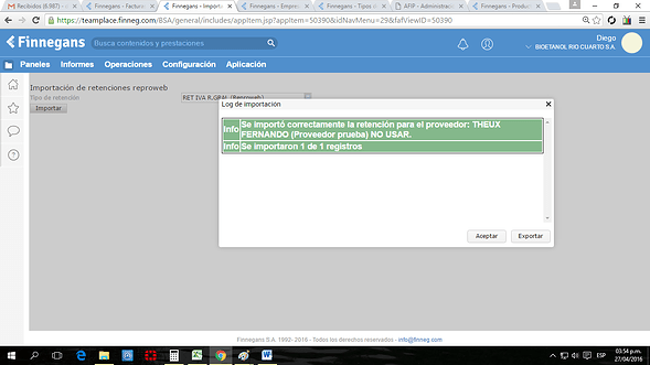 Luego, clickeamos sobre el botón “importar”. Aparecerá lo siguiente: