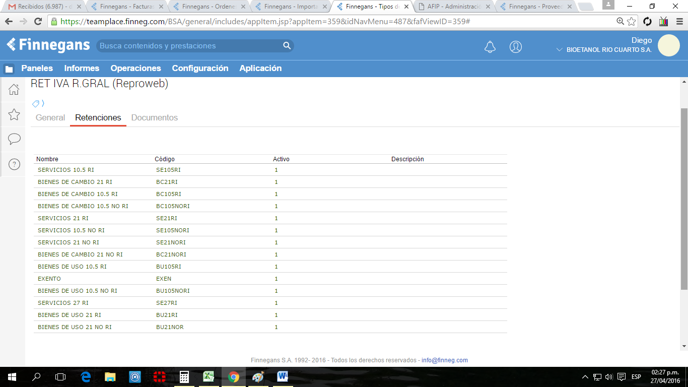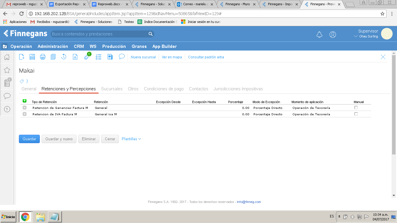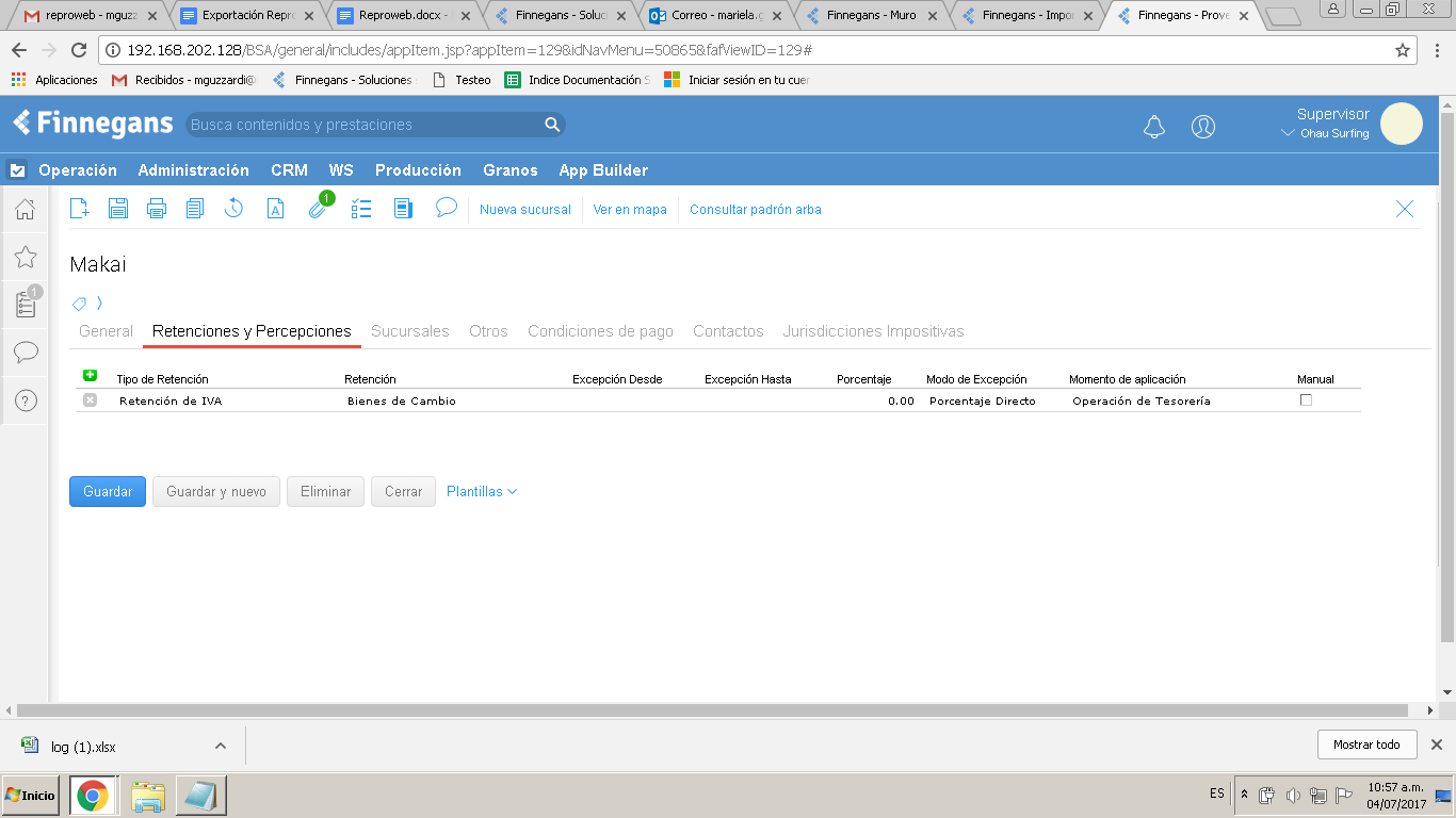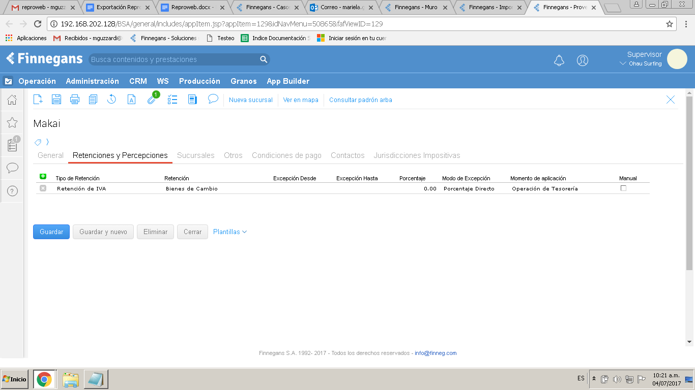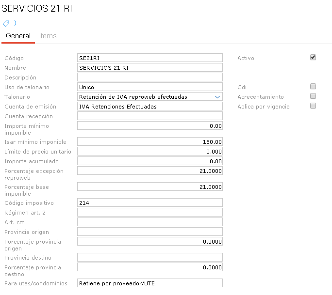 Inicialmente se configurará por defecto a los terceros una retención general y se correrá la exportación e importación de reproweb a fines de tener actualizada la base de organizaciones, debiendo tener los proveedores configuradas las retenciones y conceptos de Retención de IVA.