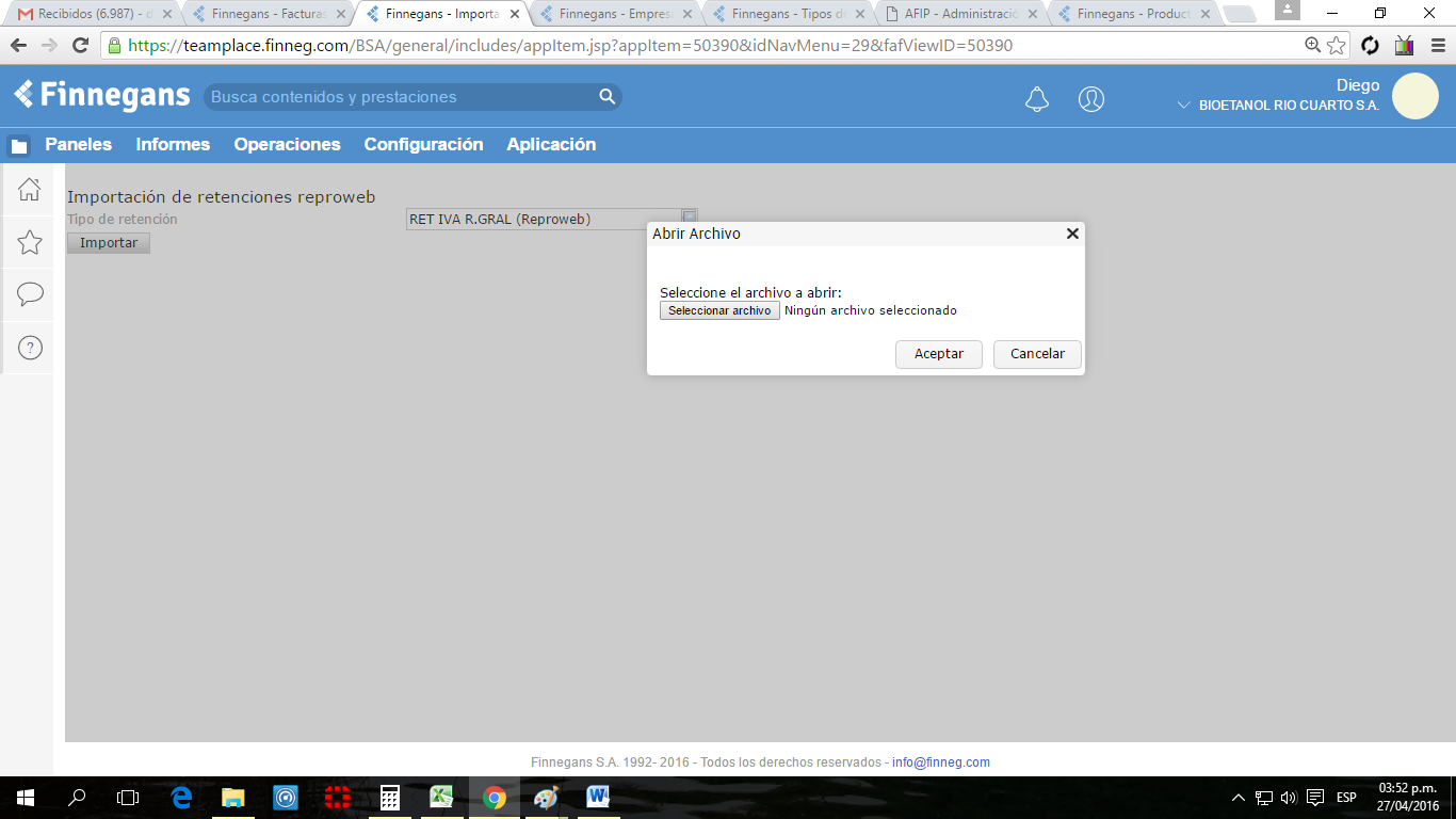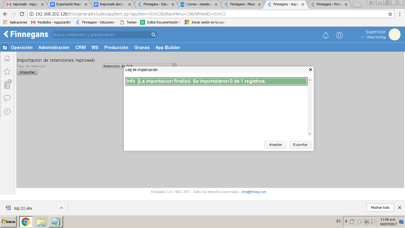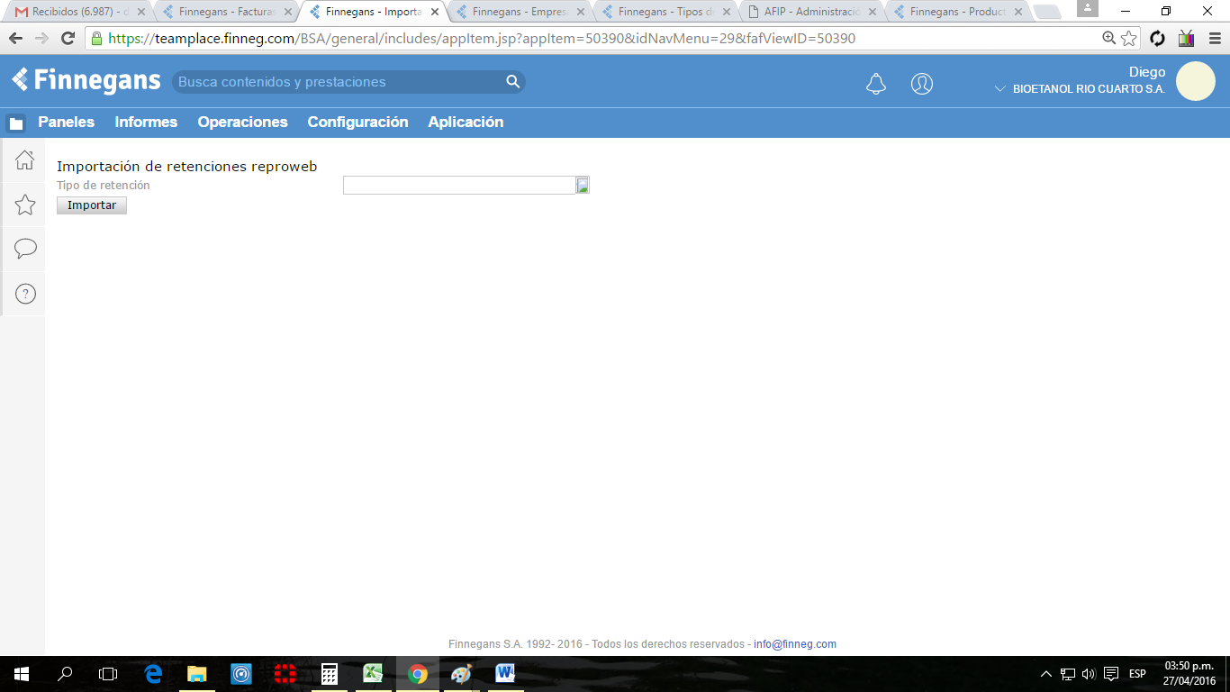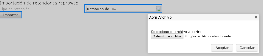 Ingresamos a la vista del sistema “importación de retenciones de reproweb”