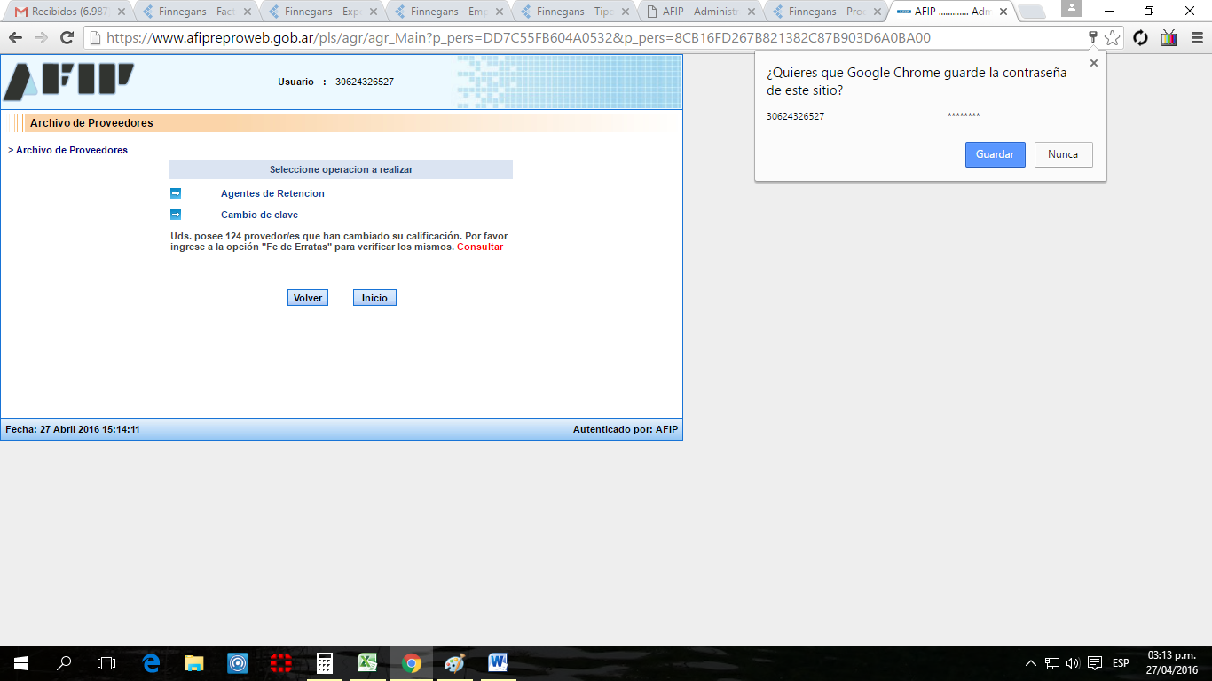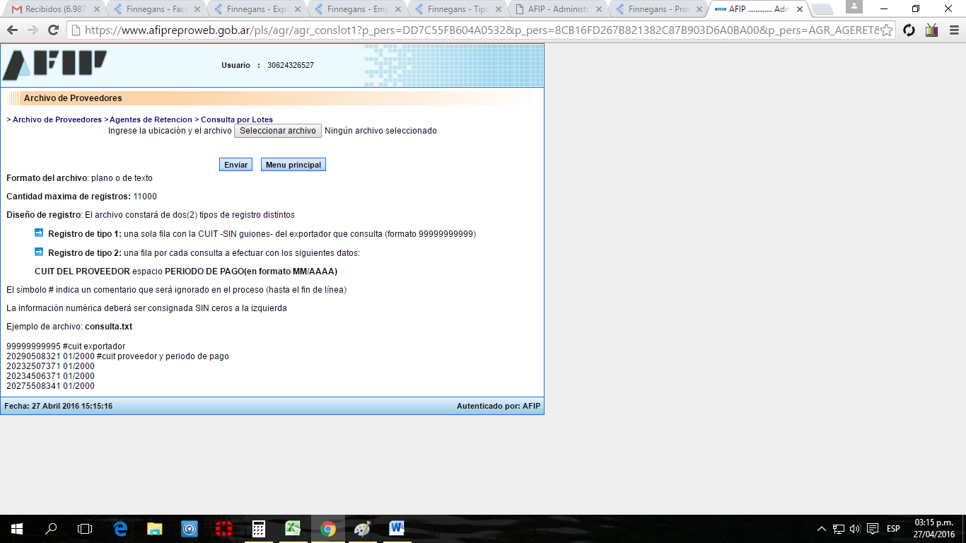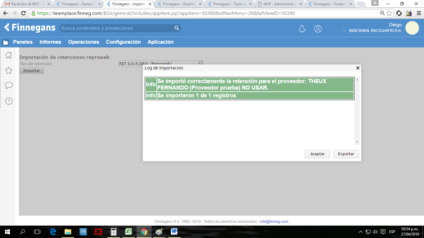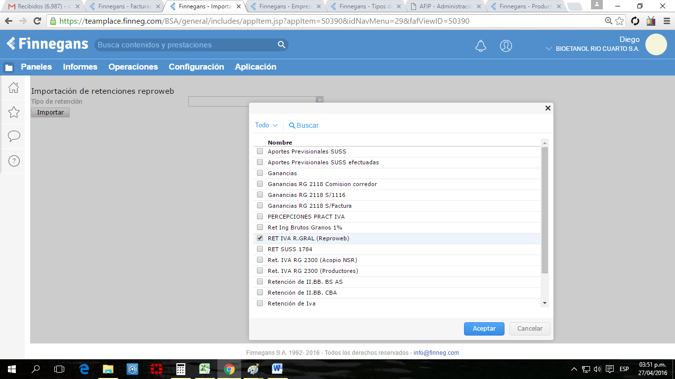 Ingresamos a la vista del sistema “importación de retenciones de reproweb”