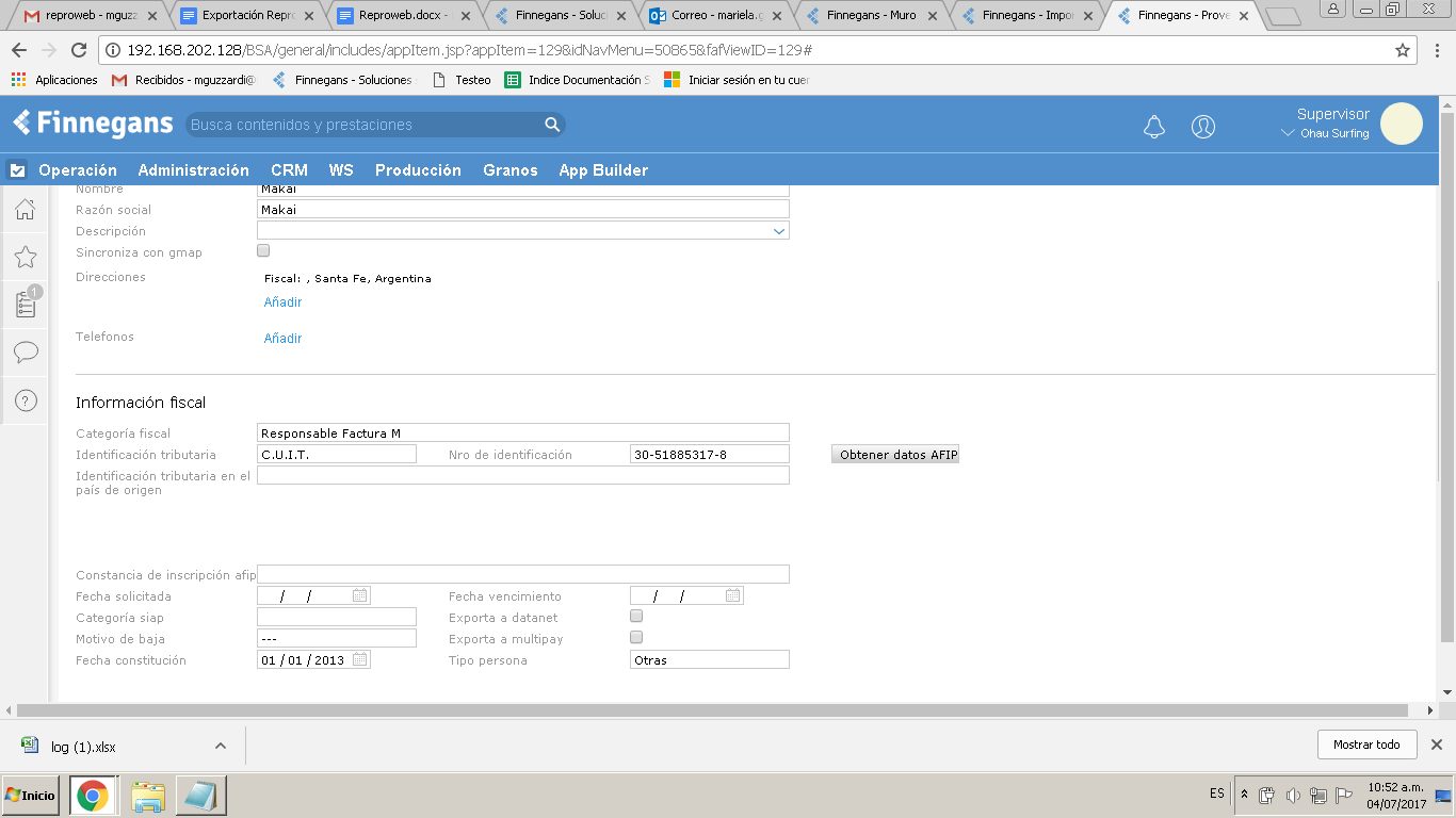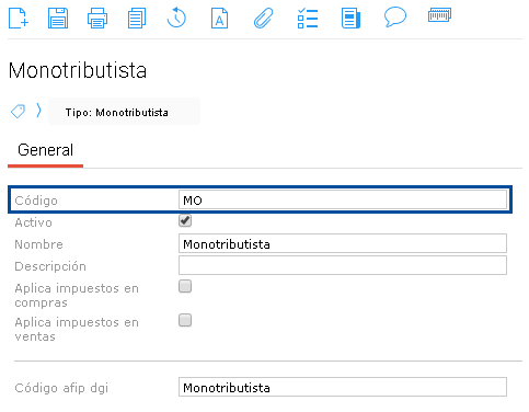 NOTA: Verificar que el código de la categoría fiscal Monotributista tenga como código MO