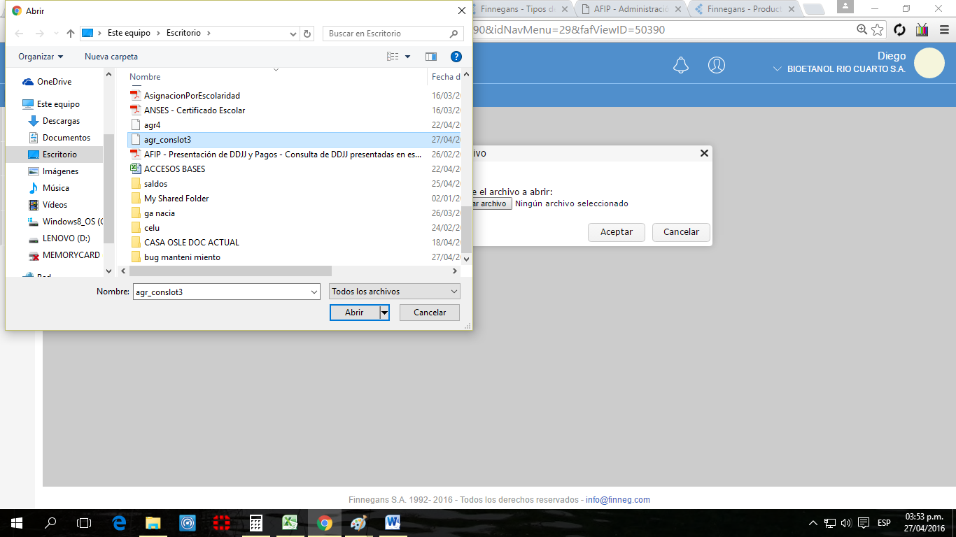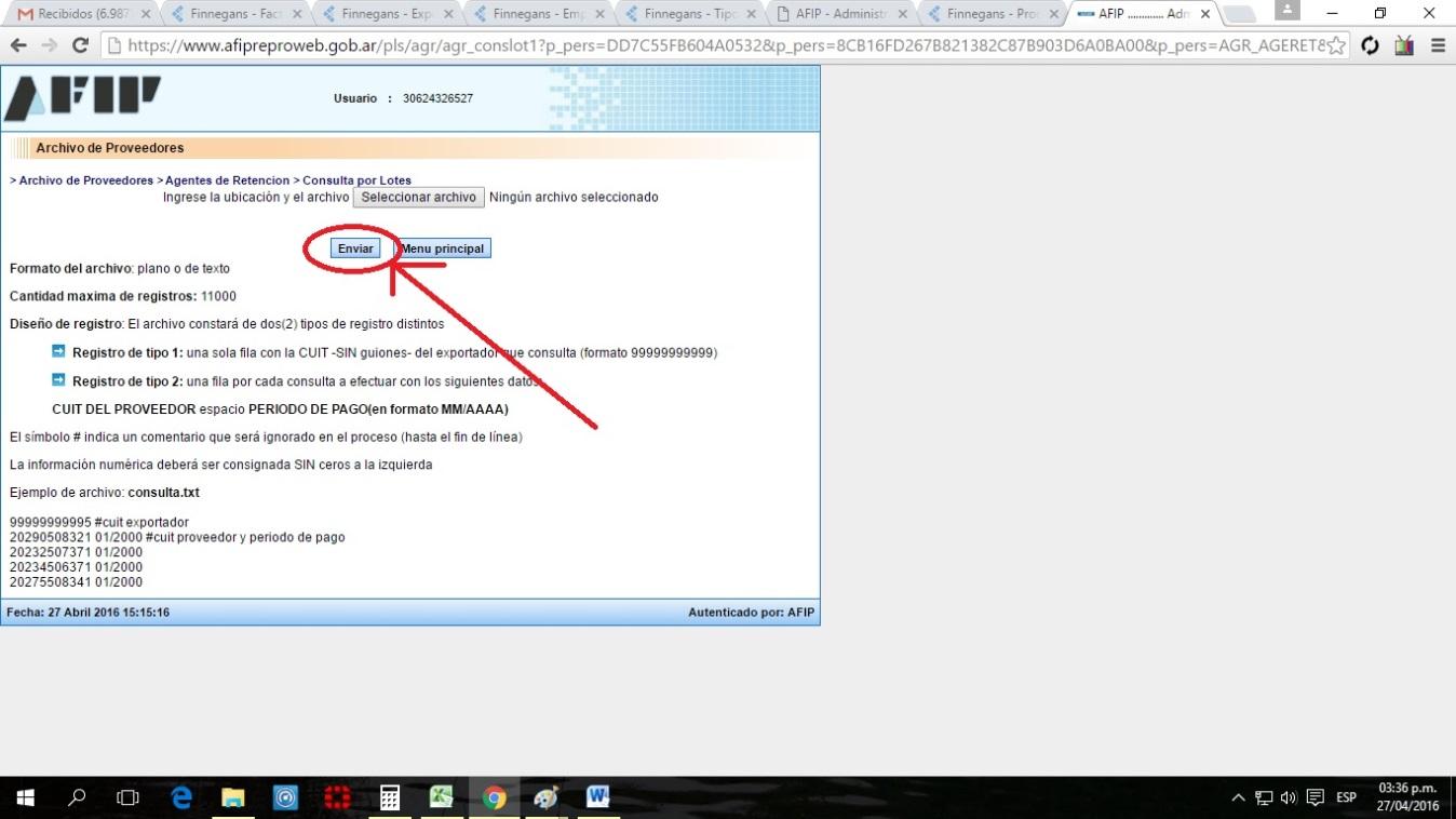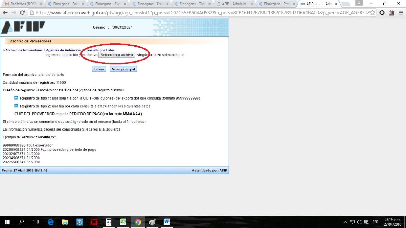 A continuación, clickeamos sobre el botón “seleccionar archivo”. Seleccionamos el archivo devuelto por ARCA: