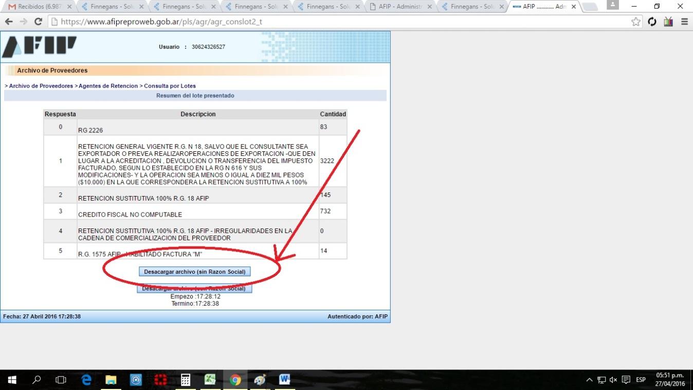 A continuación se procesará el archivo (tener en cuenta que es normal que demore unos minutos) y se devolverá una clasificación de los proveedores informaciones en sus respectivas situaciones: