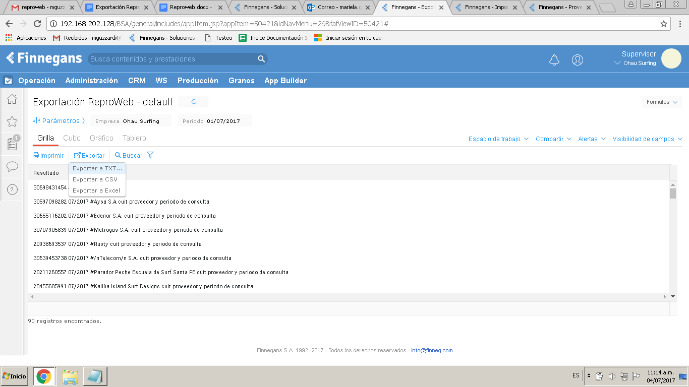Al realizar la exportación a ReproWeb, el sistema filtra todos los CUIT de los terceros que sean proveedores, cuya categoría fiscal sea distinta a Consumidor Final, Del Exterior o Exento.