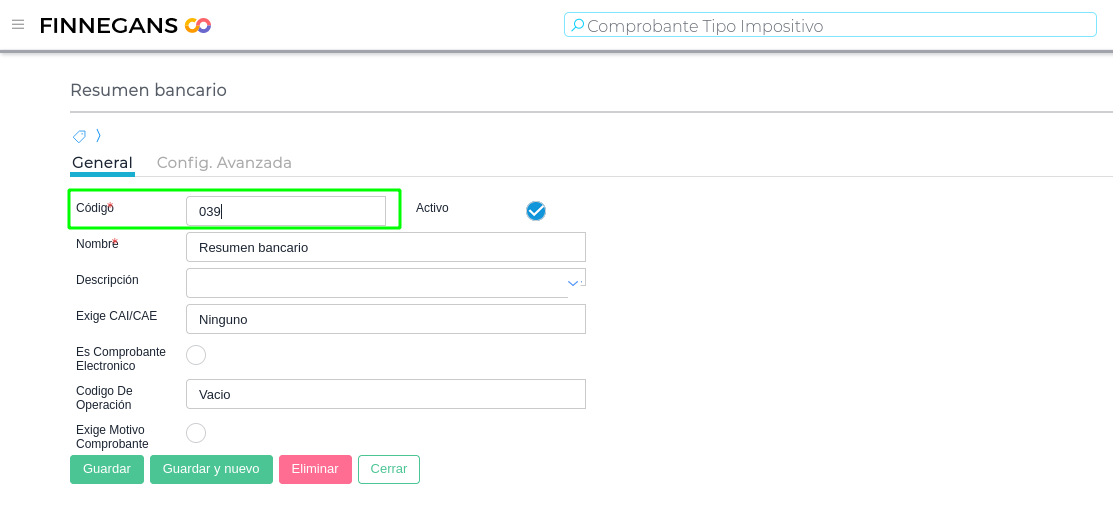 Revisar el código con el que tiene asignado el Resumen Bancario dentro de Comprobante Tipo Impositivo.