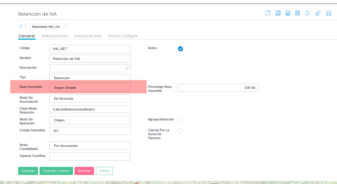 3- Dentro de la retención, en base imponible, colocar Según detalle.