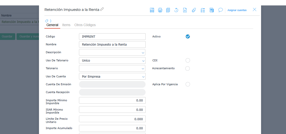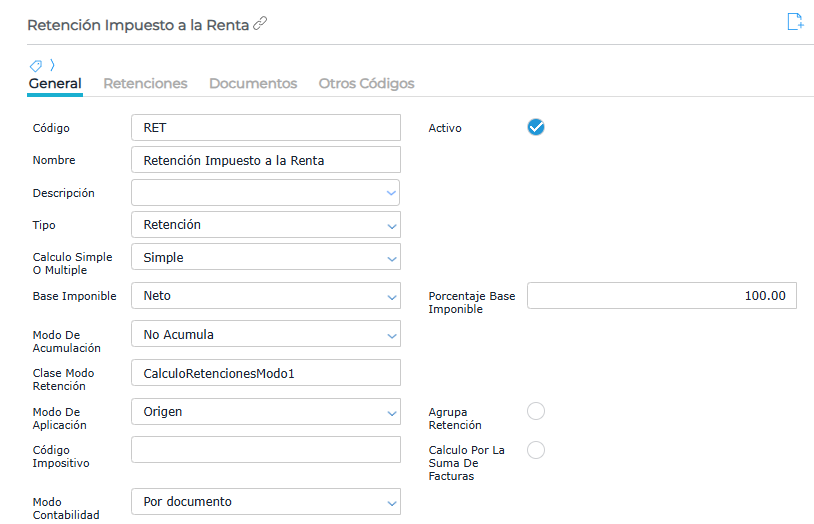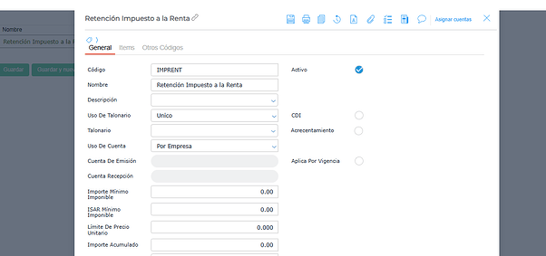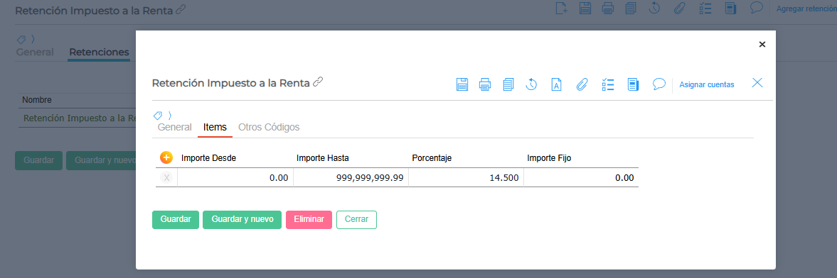 Se debe configurar la retención de la siguiente manera: