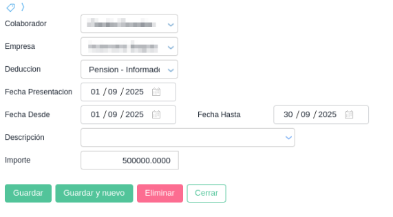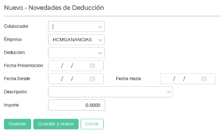Se cargan en Novedades de Deducción