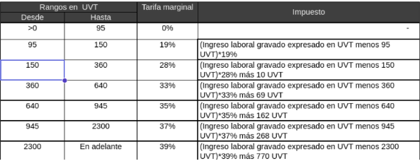 BaseGravableUVT = BaseGravable / CotizacionUVT