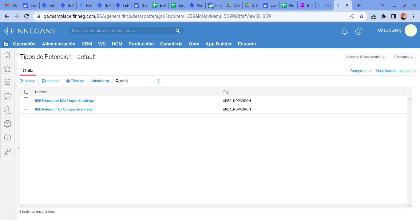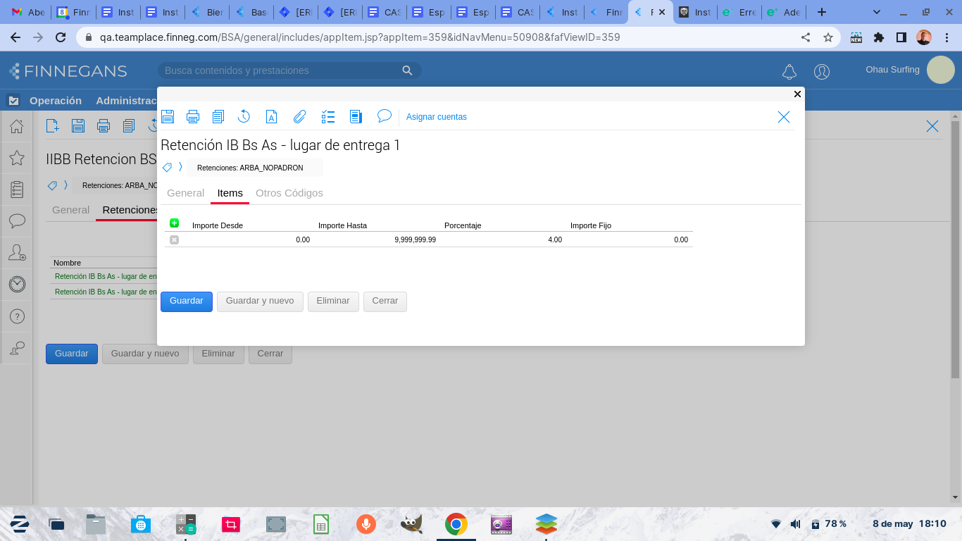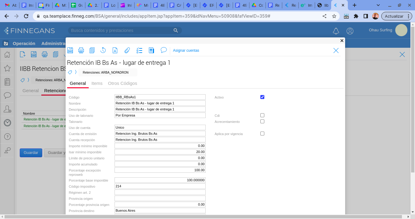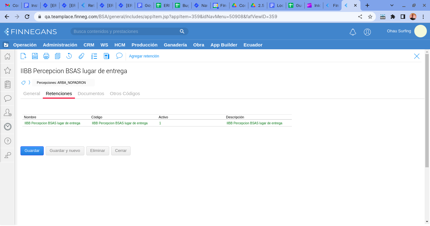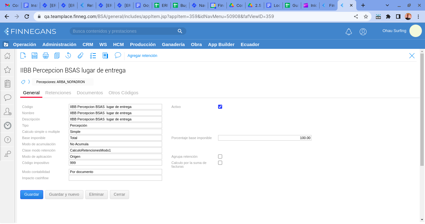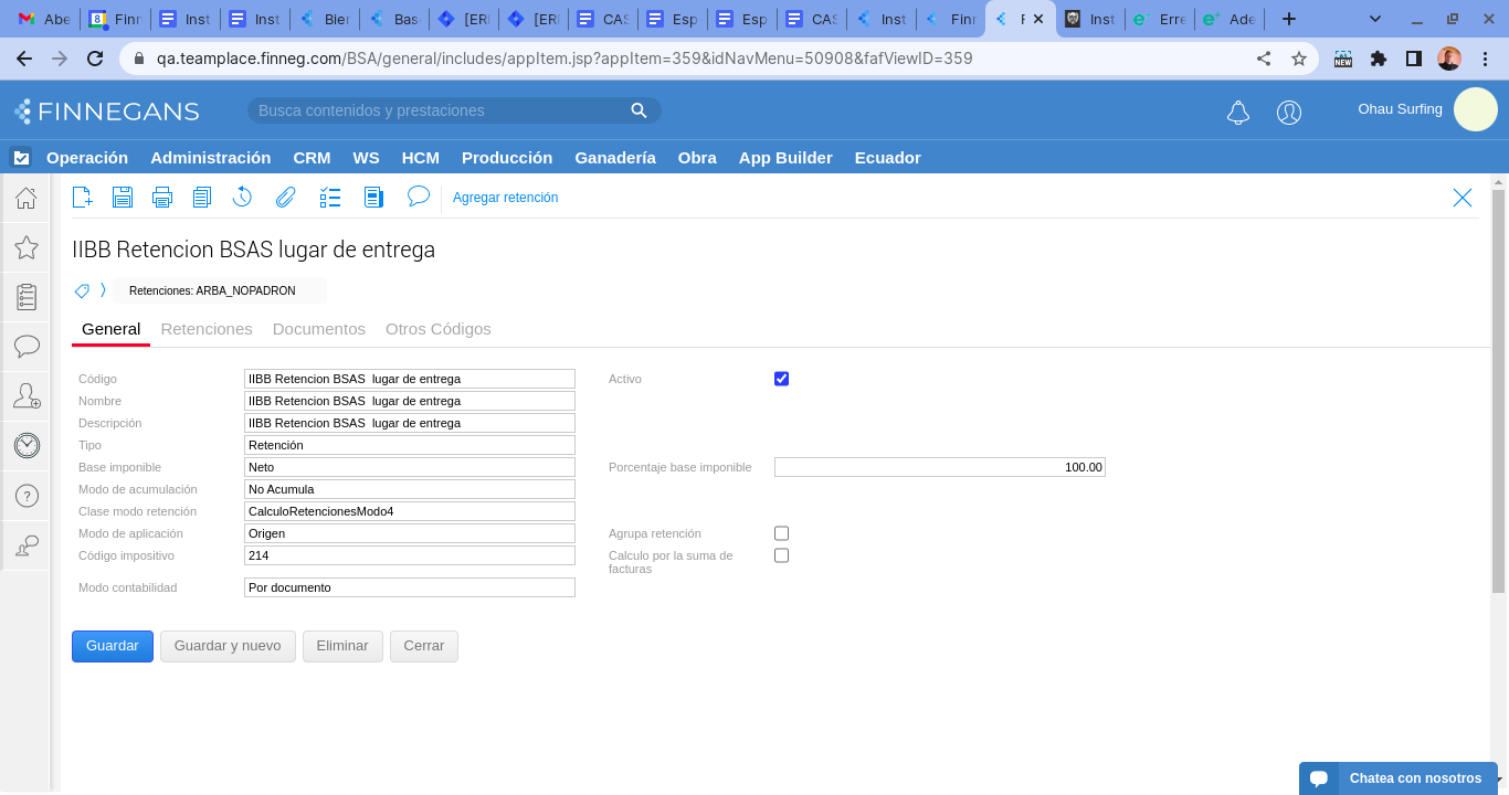 - Configurar el tipo de retención de la siguiente forma. Seleccionar Retención de IIBB
