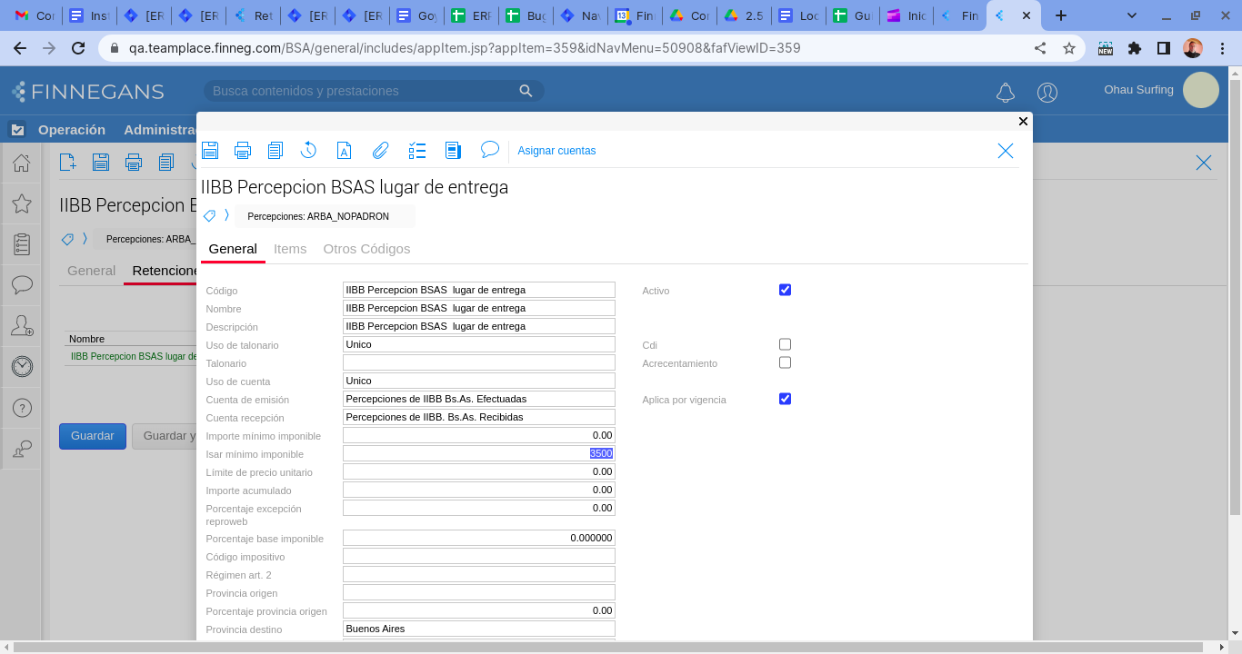- Seleccionar la opción “Percepción IIBB Bs. As.”