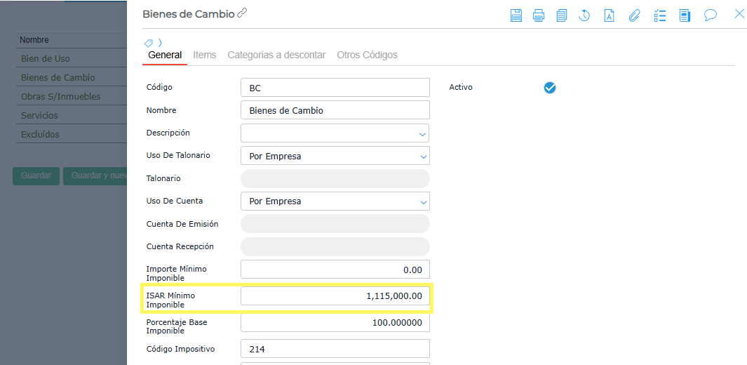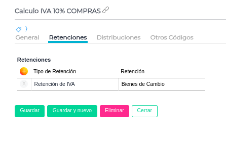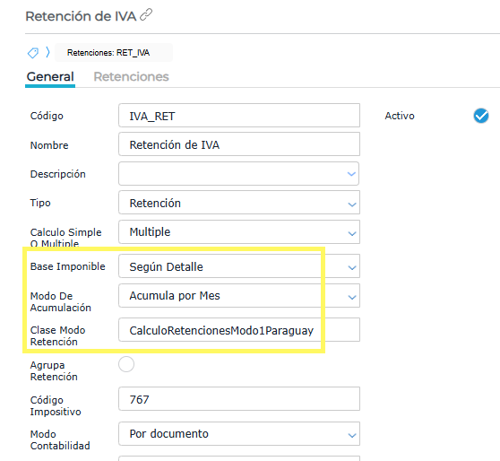 Es necesario configurar los siguientes campos en el tipo de retención: