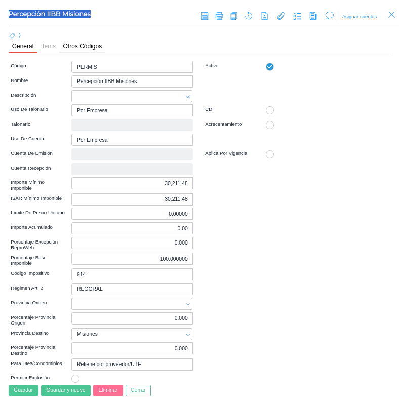 1. Percepcion IIBB Misiones