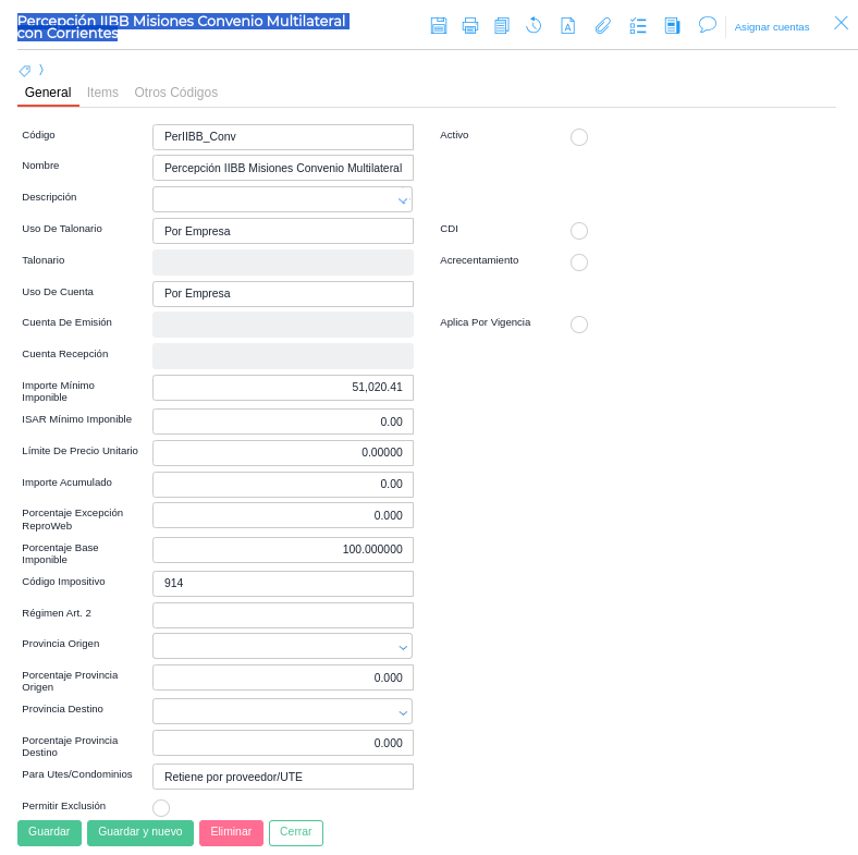 2. Percepción IIBB Misiones Convenio Multilateral con Corrientes
