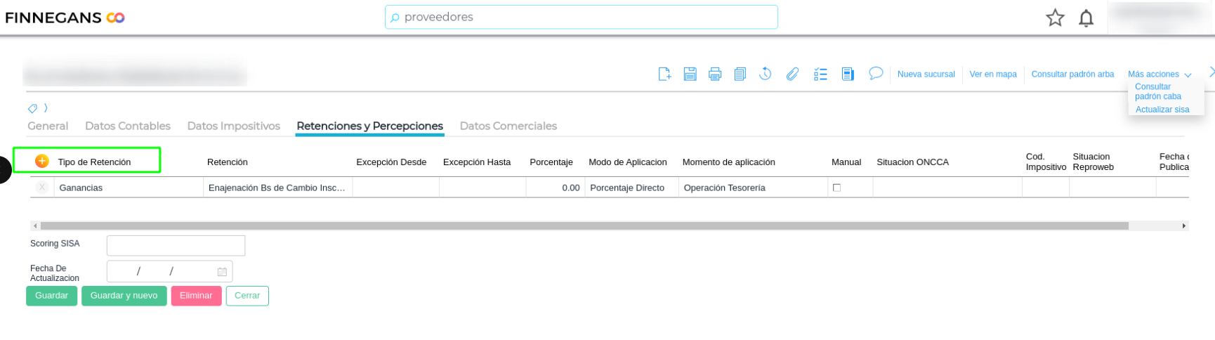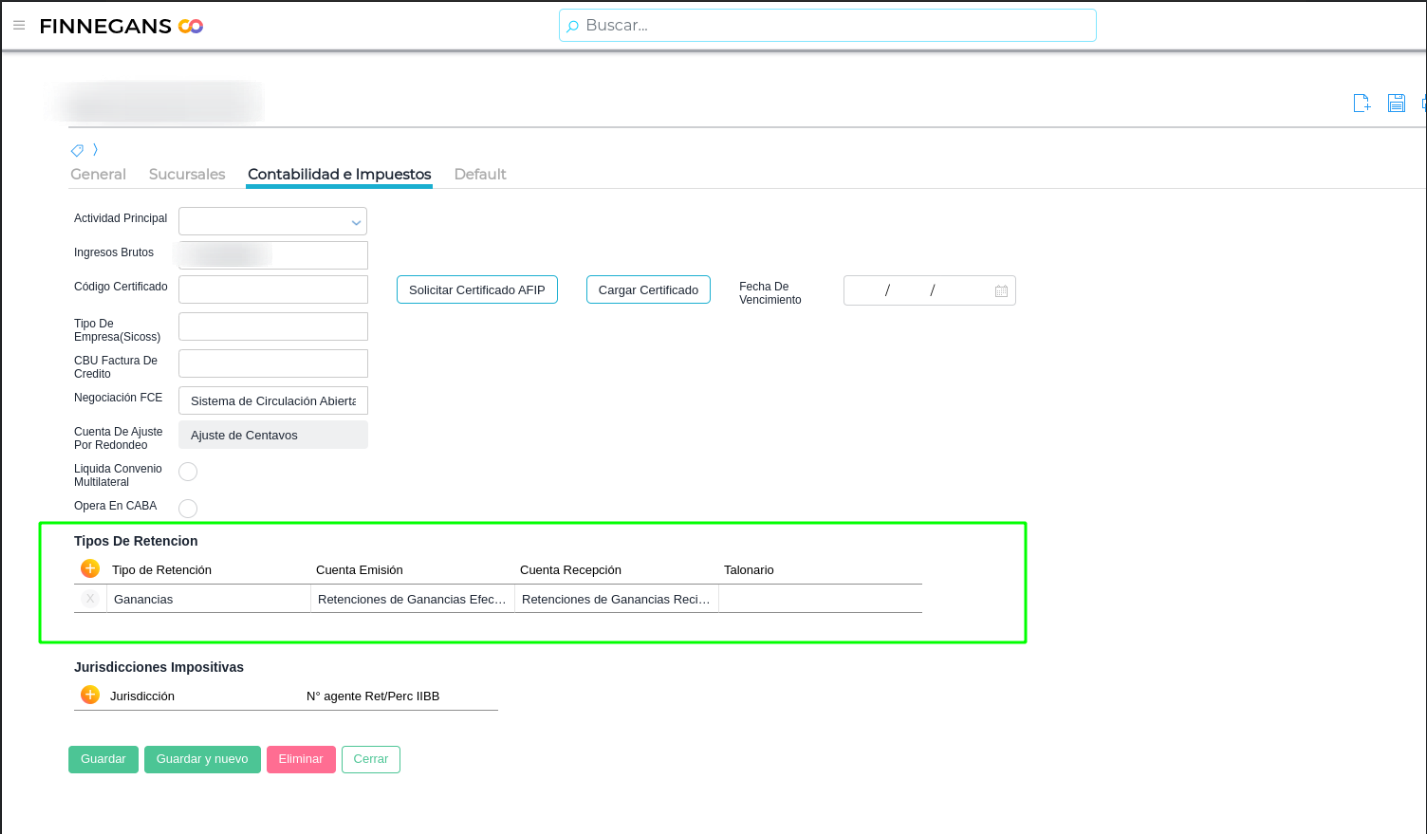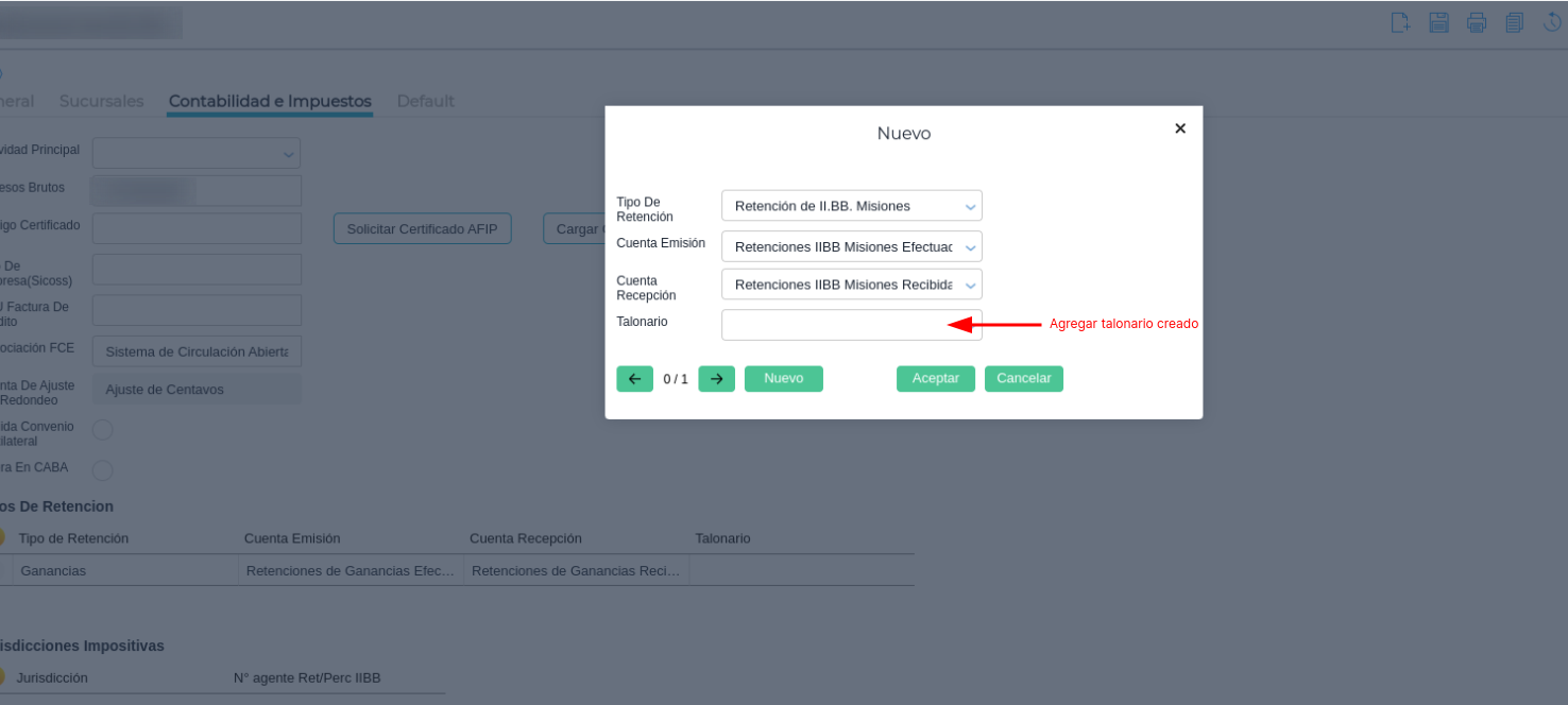 Una vez creados los talonarios, es necesario agregarlos a las retenciones, dentro de la empresa.