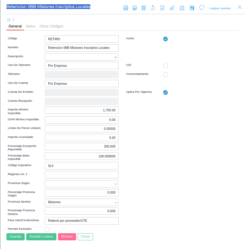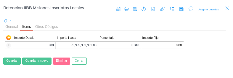 1. Retención IIBB Misiones inscriptos locales