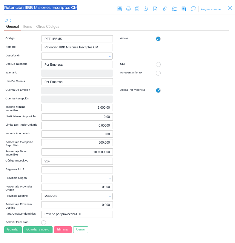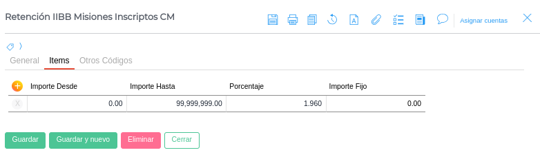 2. Retención IIBB Misiones Inscriptos CM