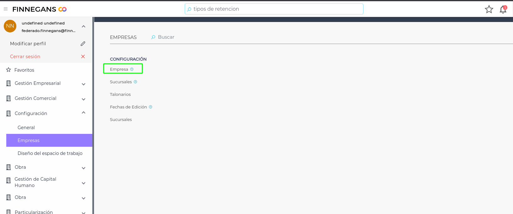 (Menú → Configuración → Empresas → Empresa)