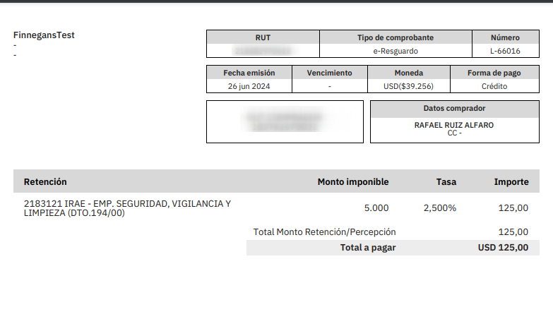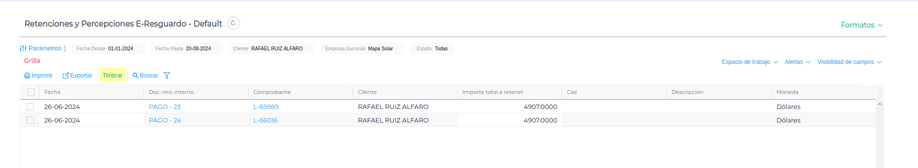 Ingresando a la opción en el buscador “Retenciones y Percepciones E-resguardo” se obtiene una lista de todas las órdenes de pago donde se hayan efectuado retenciones.