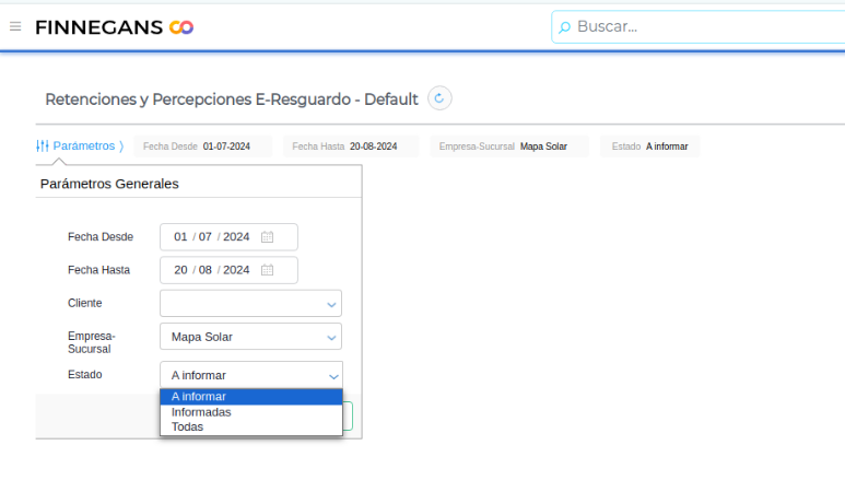 En los parámetros se puede indicar un rango de fechas y optar por ver las informadas/a informar/ todas.