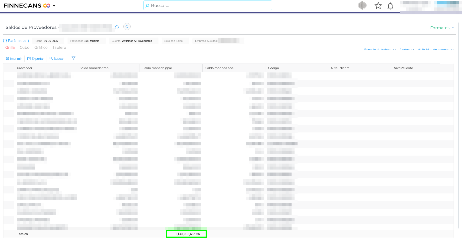 - Compara el saldo del informe Saldos de Proveedores y Balance Sumas y Saldos Moneda Principal. Ahora los importes coinciden.