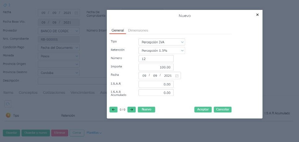¿Qué sucede cuando se quiere cargar una percepción de IVA en un resumen bancario y, al dar aceptar, se borra el importe?