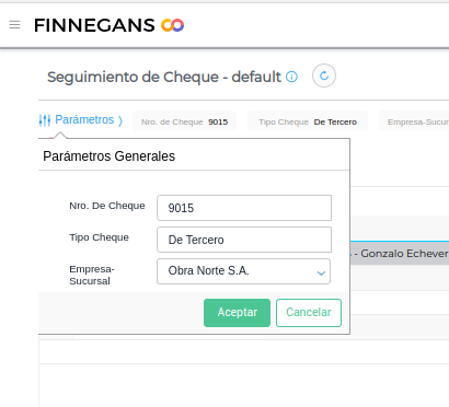 Ingresar a parámetros, filtrar por el número de cheques y tipo de cheque:
