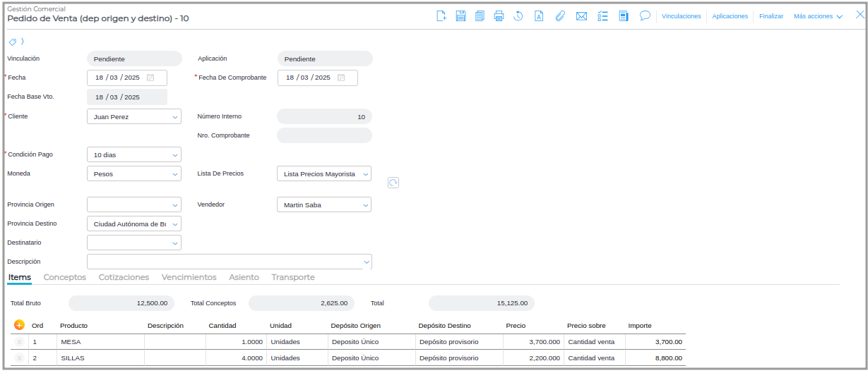 Paso 1 - Generar un Pedido de Venta